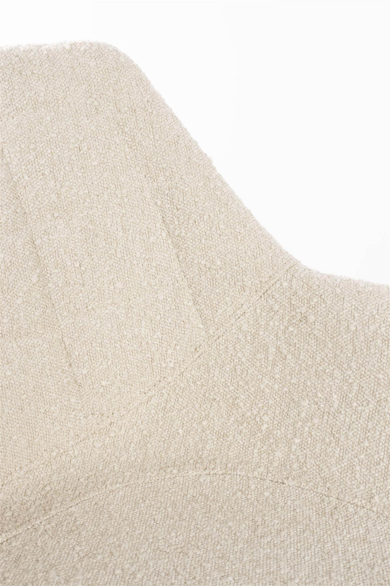 Design og Materialer: Doulton Drejestolen præsenterer et tidløst design med en naturlig farvepalet, der komplementerer forskellige indretningsstile. Stolen er betrukket med en slidstærk polyakryl og polyester blanding, der sikrer både komfort og holdbarhed. Den drejelige base i pulverlakeret stål tilføjer et moderne touch og giver stabilitet.