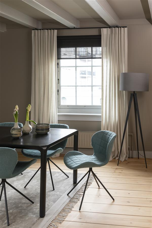 Den elegante blå farve giver stolen et friskt og sofistikeret udtryk, der nemt kan kombineres med både lyse og mørke farver i din indretning. Uanset om du ønsker et roligt eller kontrastfyldt look, er denne stol et ideelt valg.