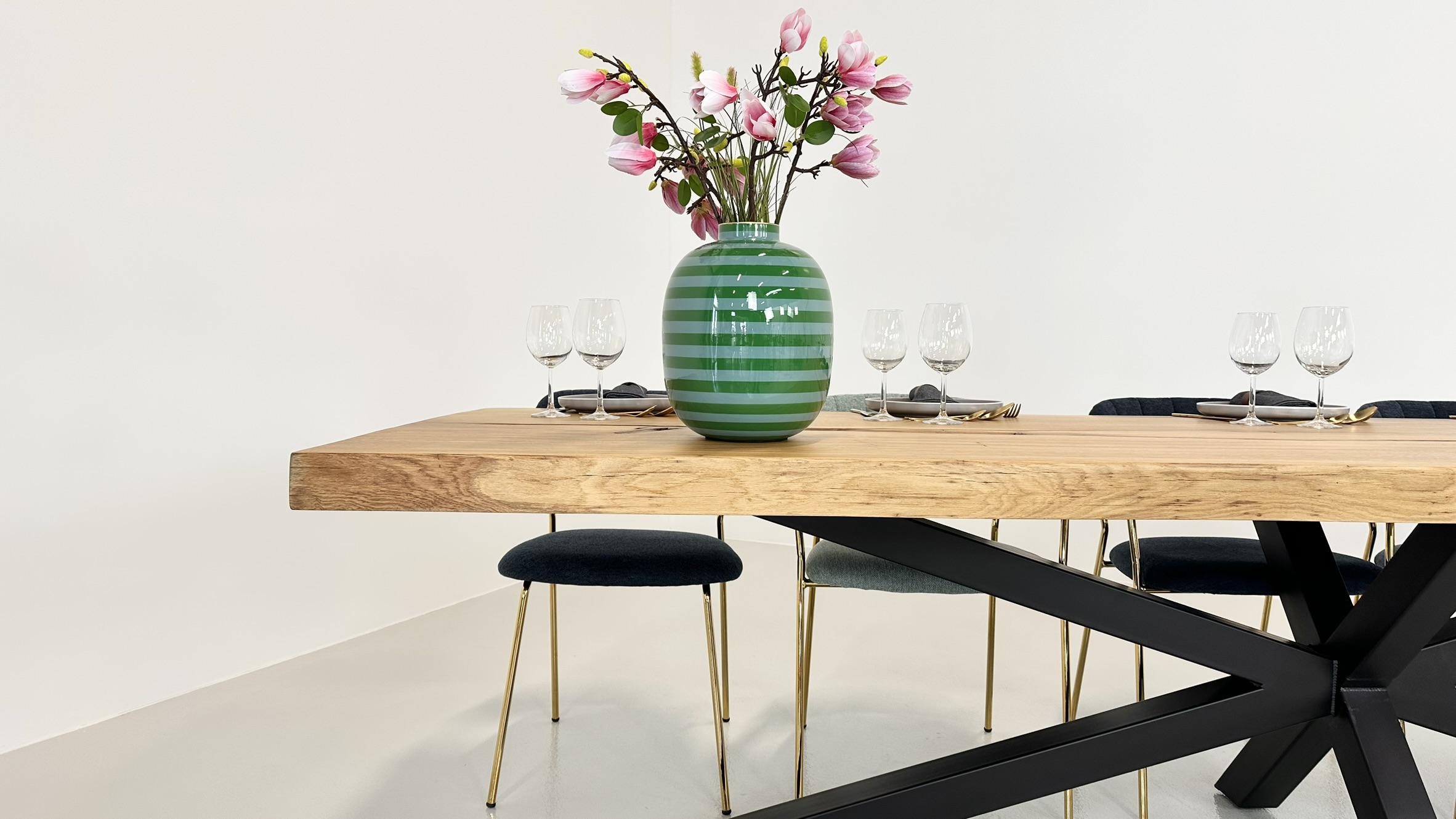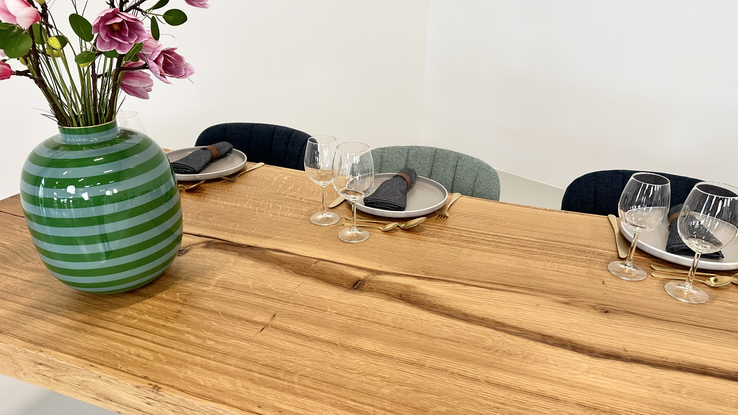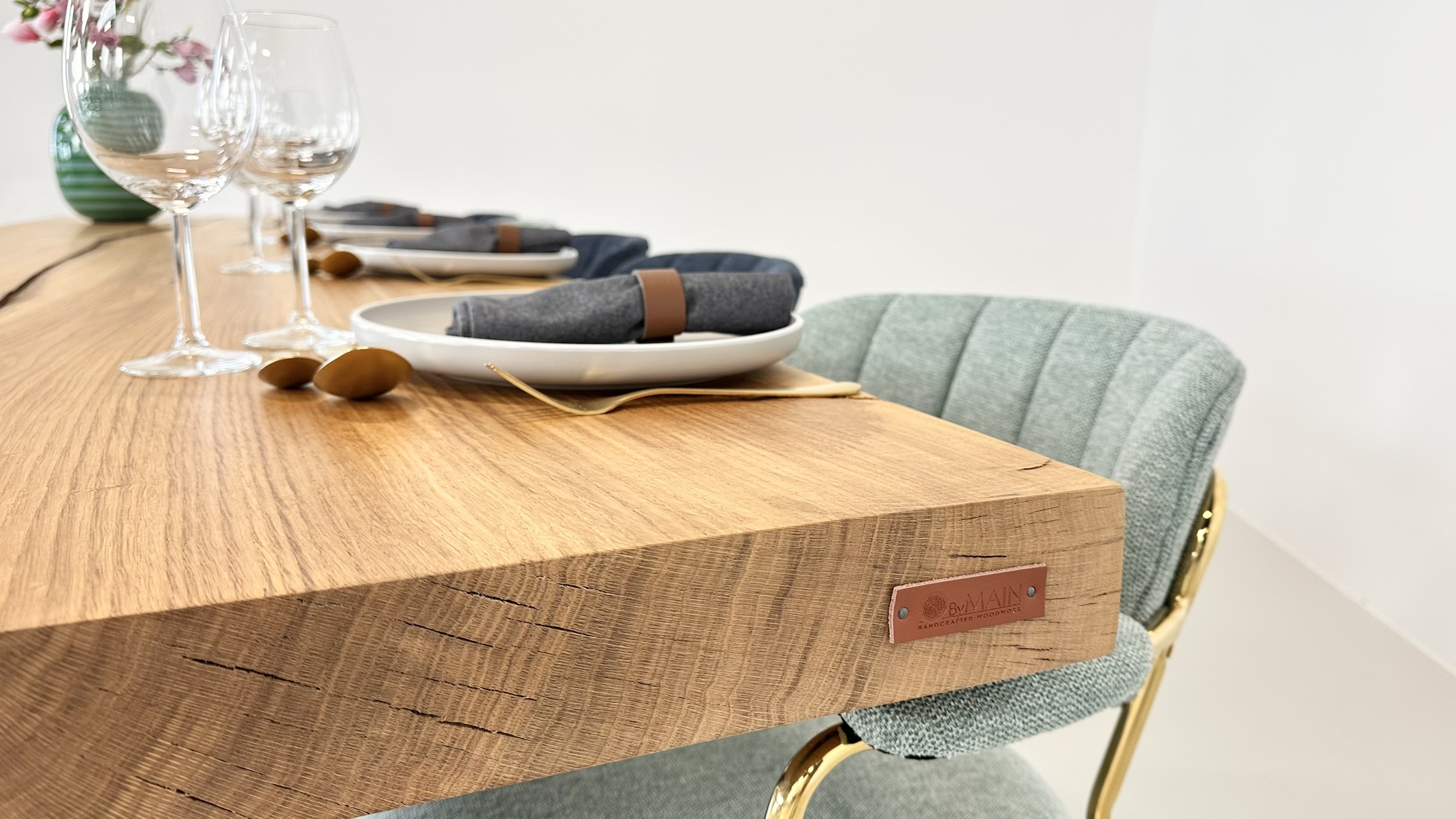 Dette gigantiske bord er skabt af én enkelt ovntørret egetræsplanke og udstråler en sjælden elegance, der fanger enhver opmærksomhed.