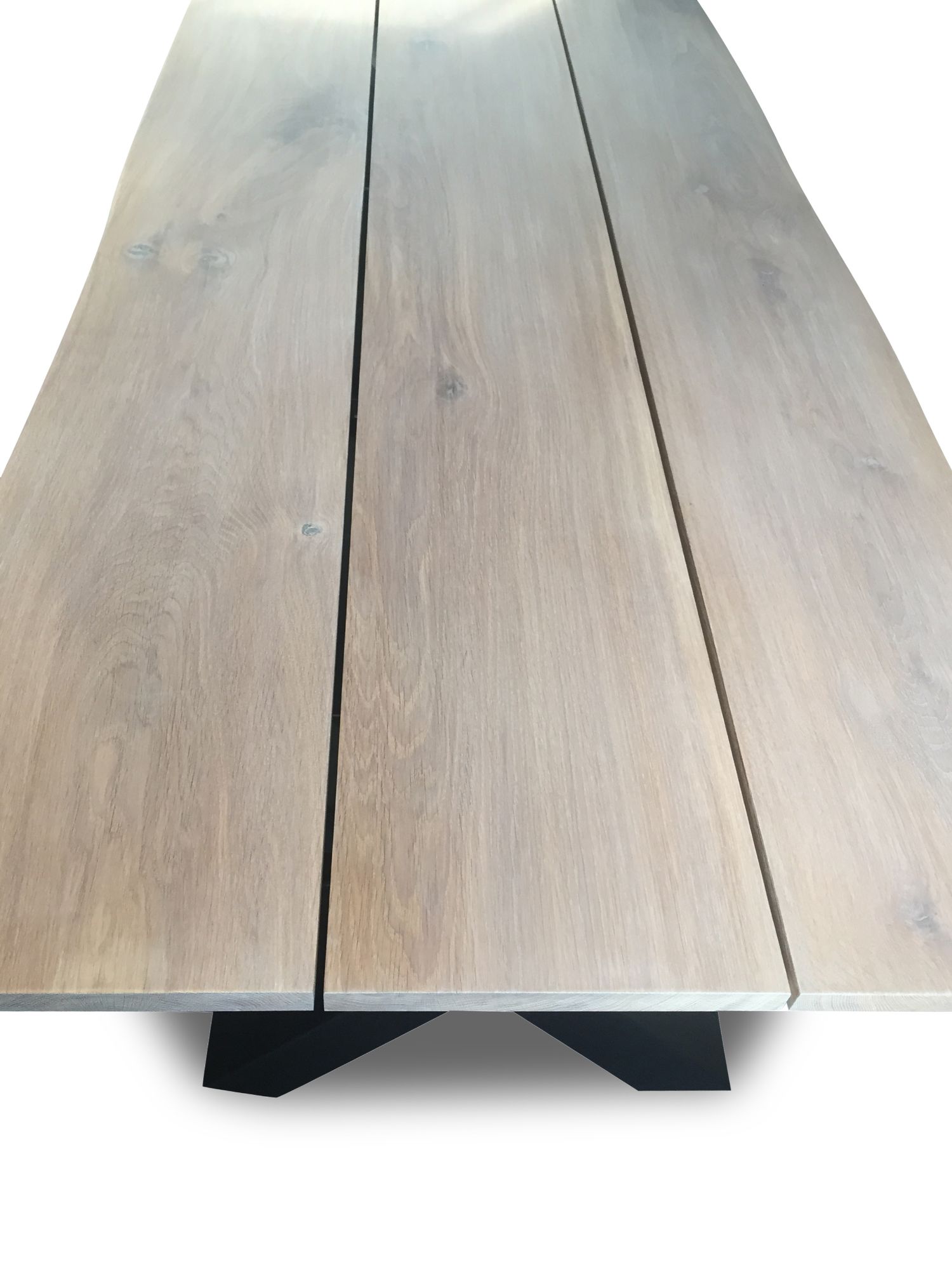 De massive X-ben i sort er en elegant og stilfuld base til dette plankebord. De tilføjer et strejf af modernitet og kontrast til den varme træoverflade. X-benene er ikke kun en æstetisk detalje, men også ekstremt stabile og sikrer, at bordet forbliver solidt og robust gennem årene.