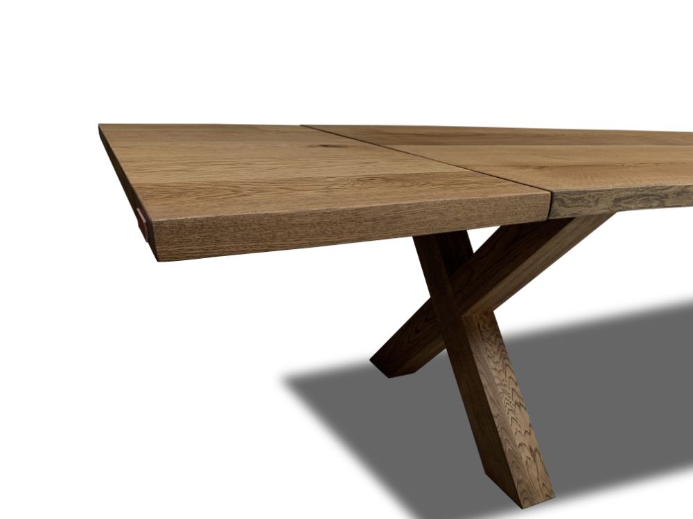 Dette plankebord er lavet af smukt naturligt egetræ, som giver det en varm og imødekommende fornemmelse. Bordet har en naturlig kant, hvilket betyder, at træet ikke er blevet slebet eller beskåret for at skabe en lige kant. Dette giver bordet en unik karakter og gør hvert enkelt bord unikt.