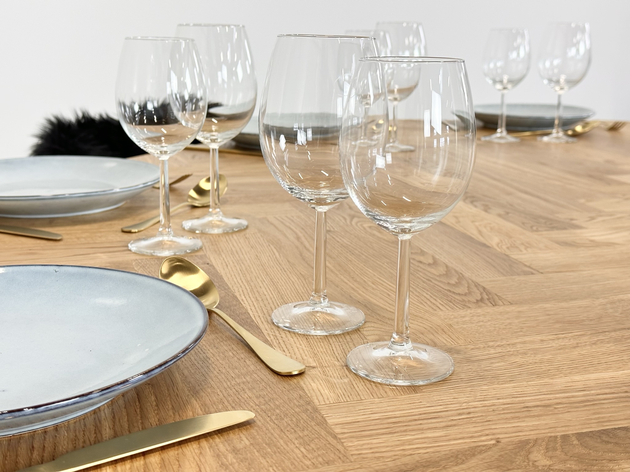 Dette spisebord mestrer kunsten at forene tradition og innovation ved at trække på den tidløse skønhed i det klassiske sildebensmønster samtidig med at det integrerer moderne innovation for at imødekomme gæster omkring bordet.