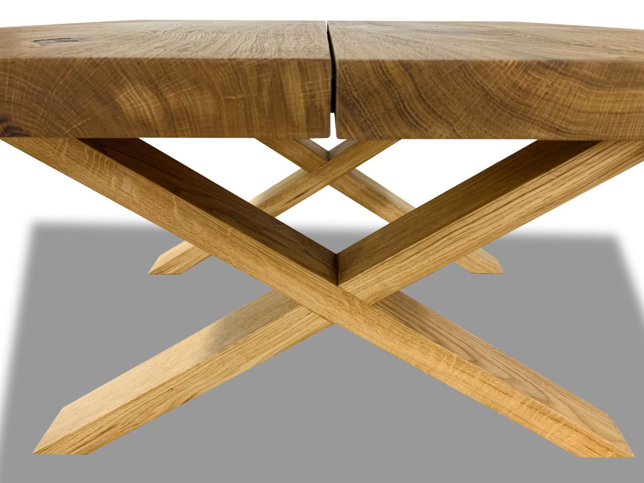 Stel af TRÆ X-ben som er udformet i 8×4 cm profil. Benene monteres via de nedfræste skruehuller med umbraco-skruemontering. Der medfølger justeringsskrue i bunden af hver bordben. Således vil bordet med fordel kunne justeres ind.