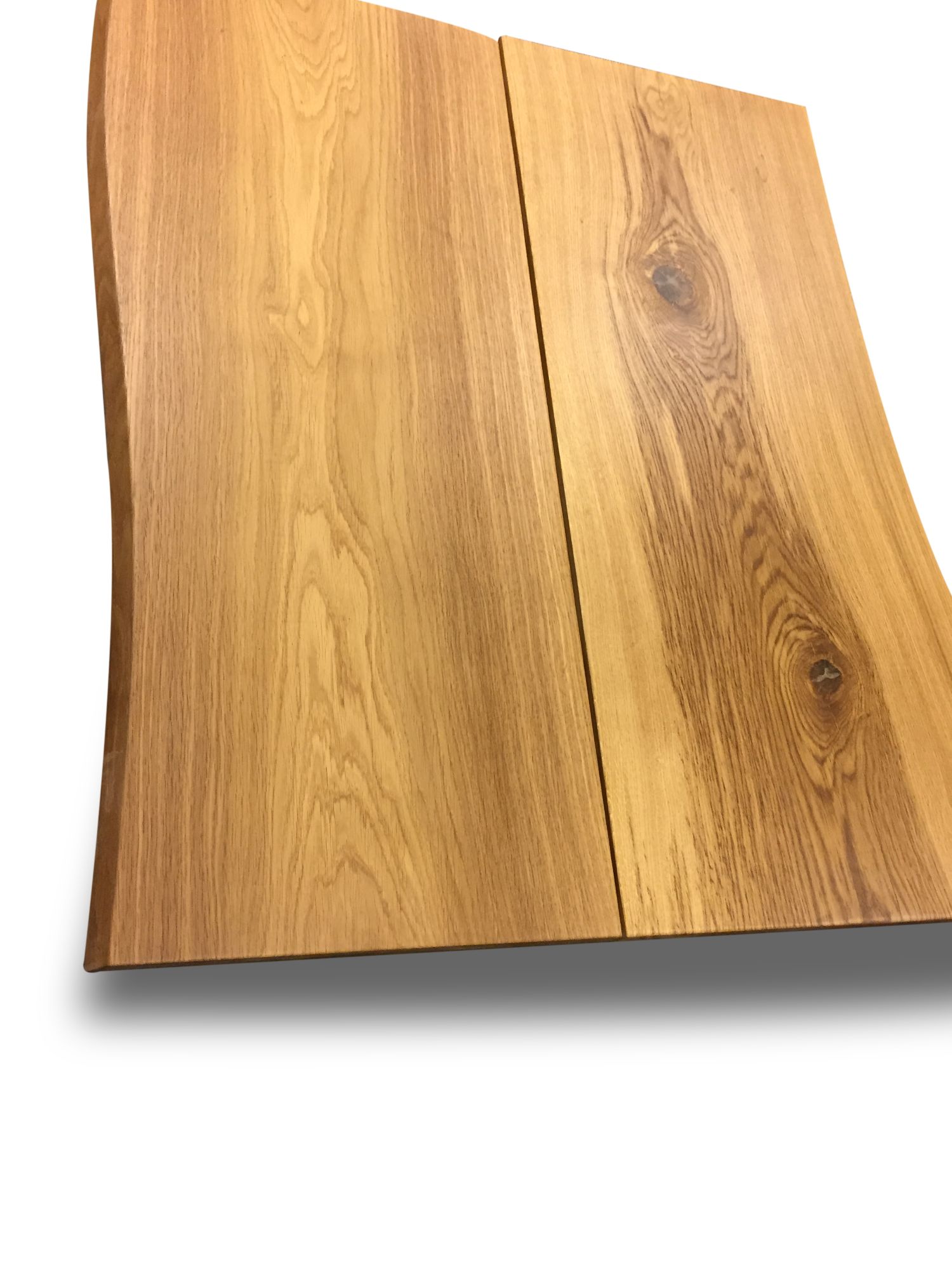 2 skønne HELE ovntørrede egetræsplanker monteret med tværliggende skjulte metelafstivere.